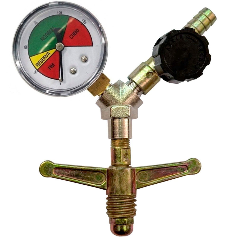 Registro de Gás Alta Pressão 5/16" Para Botijão P13 Com Manômetro