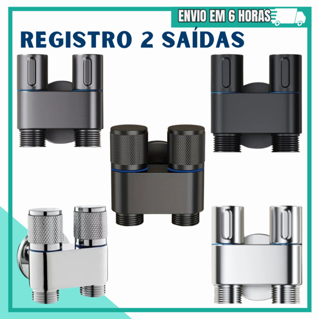 | Registro Válvula de Controle Dupla 1 Entrada 2 Saída Inox, Preto Gr... este produto | R$ 28,90 | 54% | 4.9/5 | 105 |
