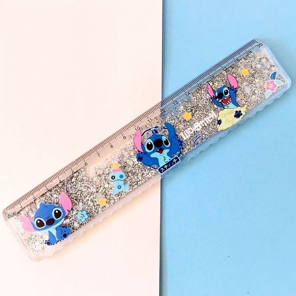 Régua Acrilica Stitch com Glitter 20 cm / Lilo & Stitch / Material Escolar / Régua Cristal