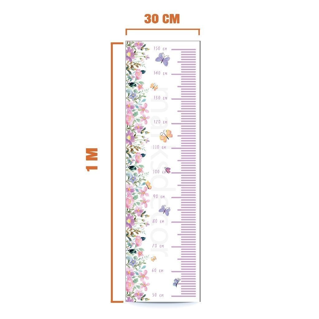 Régua de Crescimento Infantil Borboletas e Jardim Adesivo De Parede Infantil Decoração Quarto Menina