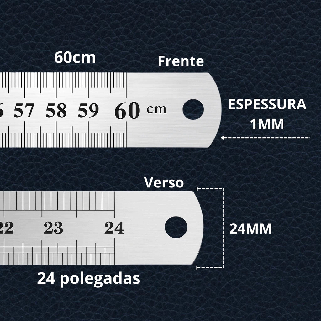 Régua de Inox 60cm Flexível Dupla Face em Cm e Polegadas – Alta Precisão e Durabilidade