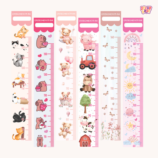 Régua De Medir Crescimento Adesiva Medidora De Altura Infantil Diversos Modelos Menina
