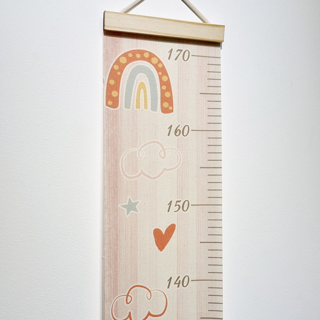 Uma maneira encantadora de registrar o crescimento das crianças. Fabricada em tecido canvas de alta qualidade, com um requintado acabamento em madeira e um prático cordão para pendurar, esta régua é tanto funcional quanto elegante. Com marcações iniciando em 30cm e estendendo-se até 170cm, proporciona uma faixa de medição abrangente para acompanhar o crescimento ao longo dos anos. Além disso, a possibilidade de utilizar uma caneta para marcar as datas e alturas das crianças adiciona um toque pessoal. Uma grande vantagem deste produto é sua facilidade de instalação. Pode ser facilmente removido e pendurado em outro local conforme desejado, tornando-o extremamente versátil e adaptável às mudanças de ambiente.