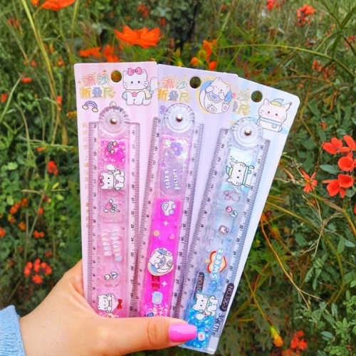 Régua Dobrável com Glitter Estilo Hello Kit Novidade Infantil Fofo