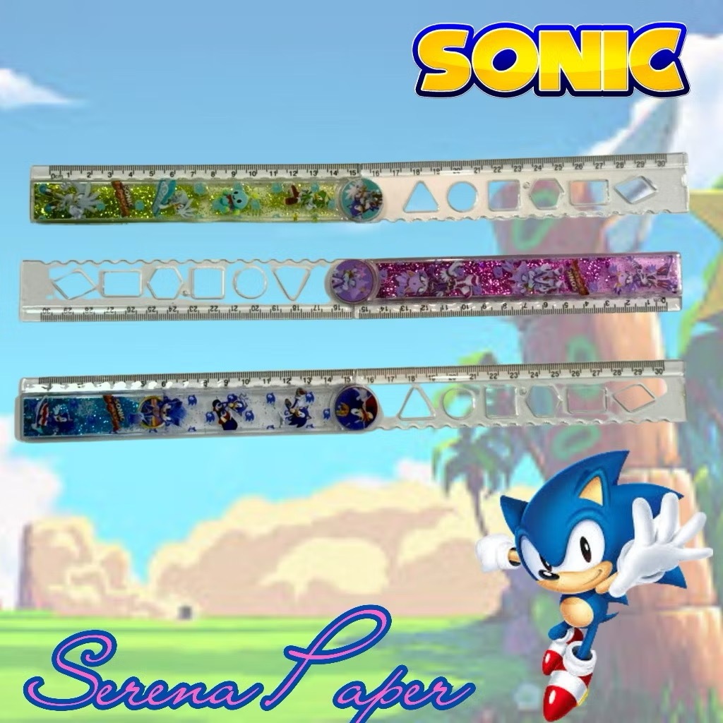 Régua Sonic dobrável com água e glitter brilho transparente 15 ou 30cm / PAPELARIA FOFA KAWAII