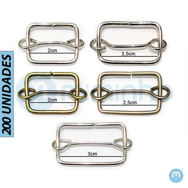 O pacote vai com 200 unidades da mesma medida/largura. Selecione a medida/largura que desejar. Como comprar vários pacotes do mesmo produto: 1) Selecione a largura/banho e clique em "adicionar ao carrinho"; 2) Repita as instruções com cada medida que precisar; 3) Quando terminar, verifique se está tudo ok em seu "carrinho" (canto superior direito). Estando tudo ok, selecione todos os itens escolhidos e clique em continuar, para finalizar a sua compra. Serve para confecção de suspensório, bolsas, mochilas... Regulador 2cm: Medida (parte interna): 2x1,5cm Espessura: 0,2cm Peso: 3g Regulador 2,5cm: Medida (parte interna): 2,5x1,5cm Espessura: 0,2cm Peso: 3g Regulador 3cm: Medida (parte interna): 3x1,6cm Espessura: 0,2cm Peso: 3g A cor pode variar conforme configuração do seu monitor ou celular.