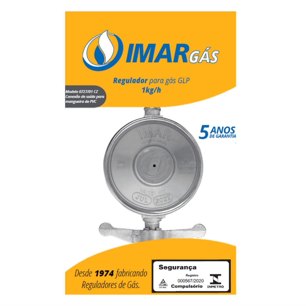 O Regulador de Gás ABS Pequeno, é utilizado para regular a pressão do gás em sistemas de gás doméstico, como botijões de gás GLP. Ele garante que a pressão do gás seja mantida em níveis seguros e adequados para o funcionamento de aparelhos como fogões, aquecedores e churrasqueiras. Vantagens: Mantém a pressão do gás em níveis seguros, evitando vazamentos e explosões. Proporciona uma queima mais eficiente do gás, otimizando o uso e economizando combustível. Garante um fluxo constante de gás, independentemente das variações na pressão do cilindro ou rede. Ajuda a identificar problemas, como vazamentos, devido ao seu design e funcionamento. Precauções: Para detectar vazamentos de gás, aplique água com sabão nas conexões. Se aparecerem bolhas, desligue o gás, use pasta de vedação e teste novamente. Isso garante a segurança.. Após a instalação, não reutilize instalações com mais de 5 anos. A ABNT recomenda uma vida útil segura de até 4 anos e 11 meses. Evite torcer ou forçar o conector, pois isso pode desregular o sistema e causar vazamentos. Dados técnicos: Marca: Imar Peso: 50g Modelo: Gás Pequeno 1kg Garantia: 5 anos de garantia