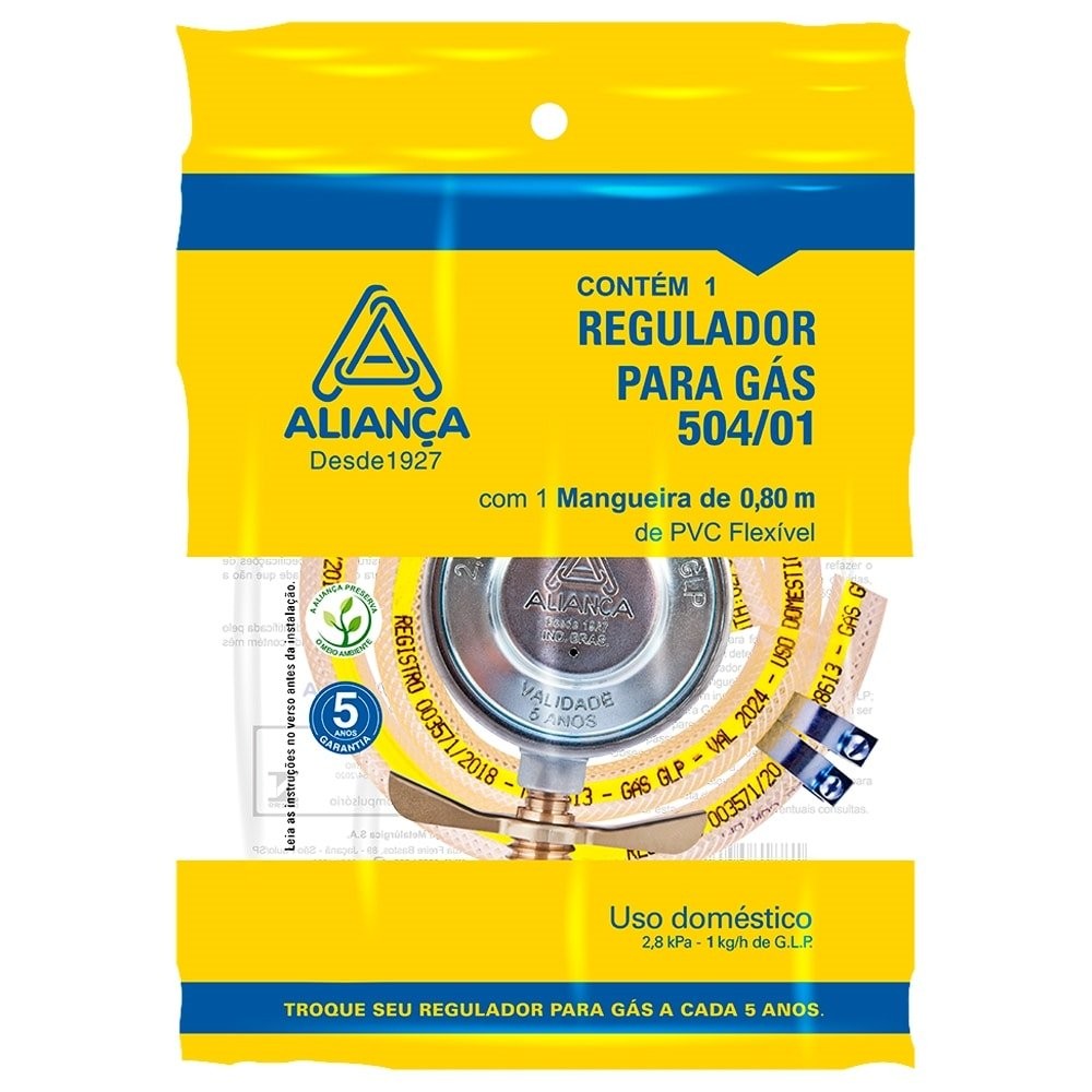 Regulador para Gás Aliança 504/01 Médio com Mangueira 80cm
