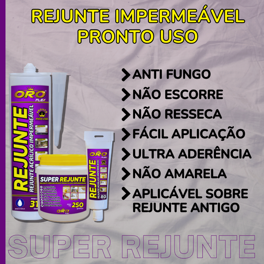 OROFLEX SUPER REJUNTE é um PREENCHEDOR ADESIVO de fácil aplicação por ser PRONTO USO e MONOCOMPONENTE. Além disso, sua aplicação proporciona um preenchimento uniforme com PERFEITO ACABAMENTO. RESISTENTE a água, seu uso é indicado em ambientes INTERNOS e EXTERNOS, suportando temperaturas altas além das intempéries climáticas. OROFLEX SUPER REJUNTE é a BASE D’ÁGUA, NÃO contém solventes, sem forte odor, NÃO ESCORRE e é IMPERMEÁVEL. INDICADO PARA: preencher, reparar, nivelar e corrigir diversos revestimentos. É só aplicar, retirar o excesso e PRONTO! Sua cura ao toque é de 6 horas e total de 24 horas (podendo ser molhado). ** INSTRUÇÕES DE USO COMPLETO NAS FOTOS ** PRODUTO: OROFLEX SUPER REJUNTE - REJUNTE ACRÍLICO PRONTO USO IMPERMEÁVEL TEXTURA DO PRODUTO NA EMBALAGEM: Massa Pastosa TEXTURA DO PRODUTO DEPOIS DE SECO: Rígida CORES: Branco | Cinza | Preto | Palha (verificar a disponibilidade de estoque no ato da compra) TEMPERATURA QUENTE: Suporta até 80°C TEMPERATURA FRIA: Suporta até -5°C SECAGEM PARCIAL: 6 horas (podendo aplicar uma segunda demão) SECAGEM TOTAL: 24 horas (podendo ser molhado, lixado e pintado) IMPERMEÁVEL, ANTI-FUNGO / ANTI-MOFO RENDIMENTO MÉDIO APROXIMADO EM M² (metros quadrados) e METROS LINEARES NAS FOTOS DO ANÚNCIO USO PRETENDIDO: Preenchimento de frestas, buracos e vãos em revestimentos novos e também aplicação sobre rejunte antigo, rejunte quebrado ou rejunte faltante. INDICADO PARA REJUNTAMENTO EM: REVESTIMENTOS COMO: PISOS–AZULEJOS–PORCELANAS–PORCELANATOS–BLOCOS–TIJOLOS–PAREDES–PISOS–PIAS–BOX DE BANHEIRO–APLICAÇÃO DE REJUNTE SOBRE REJUNTE **IMPORTANTE** - RETIRAR O EXCESSO DE REJUNTE LOGO APÓS A APLICAÇÃO. DEPOIS DE SECO A RETIRADA DO EXCESSO SE TORNA EXTREMAMENTE DIFICIL DEVIDO AO ALTO PODER DE FIXAÇÃO! VANTAGENS GERAIS: Suporta até 80°C | Produto 100% Nacional |Pronto para uso | Cores Diversas| Base D'água | Sem cheiro | Não resseca | Não descola | Fácil aplicação |Ultra Aderência | Área Interna e Externa | Perfeito acabamento | Alta Resistência e Durabilidade | Antifungo e Antimofo | Agarre imediato | A cor branca não amarela com o tempo | Pode ser aplicado sobre rejunte antigo, quebrado ou faltante. PREPARAÇÃO DA SUPERFÍCIE: Deixar a superfície totalmente seca, limpa e livre de óleo e pó e partículas soltas. COMO UTILIZAR: Realizar a aplicação preenchendo toda a área de aplicação. Espalhar o produto com o dedo (utilize uma luva de látex) ou pazinha, espátula metálica ou de silicone afim de preencher 100% da superfície sem deixar espaços vazios. RETIRAR O EXCESSO LOGO APÓS A APLICAÇÃO com uma espátula ou um pano levemente umedecido. Caso haja retração do produto, aplique uma segunda camada após 6 horas. Após aberto, fechar corretamente para evitar ressecamento do produto dentro da embalagem. ORIENTAÇÕES ADICIONAIS: 1) Produto PRONTO USO – NUNCA DILUIR com água ou outro componente. A diluição muda toda a estrutura molecular do produto perdendo a sua adesividade. 2) Não aplicar em locais molhados, sob umidade ou em dias de chuva. 3) NÃO MOLHAR, TAPAR COBRIR OU ABAFAR o local após realizar a aplicação até a cura total do produto 4) Não seguir tais instruções poderá comprometer o resultado final na aderência do produto. 5) O produto em contato com a pele pode causar ressecamento. Lave com sabão ou sabonete neutro em água corrente. Deixar fora do alcance de crianças e animais. 6) Guardar e armazenar em local seco e arejado. - A PLATAFORMA NÃO PERMITE realizar nenhum tipo de alteração, observação ou atualização do seu cadastro. - A RESPONSABILIDADE DE ENTREGA É 100% DA PLATAFORMA. Não temos interferência em prazos de entrega. A data prevista de entrega aparece em seu painel, dentro do campo de COMPRAS, por isso, se atente a DATA PREVISTA DE ENTREGA que é informada no ato sua compra. - O PRODUTO ACOMPANHA NOTA FISCAL ELETRÔNICA? Sim! Todos os produtos acompanham junto a Nota Fiscal. - DATA DE VALIDADE DOS PRODUTOS: 3 anos de Validade após a data de fabricação. - QUANTO TEMPO LEVA PARA DESPACHAR MINHA COMPRA? Pedidos com pagamentos confirmados até as 11h00 são despachados no mesmo dia. Após as 11h00 o pedido será despachado no próximo dia útil. - POSSUI PRONTA ENTREGA, ESTOQUE? Sim! Todos os nossos produtos possuem pronta entrega em alto volume de estoque. - RECLAMAÇÕES/PROBLEMAS COM A COMPRA: Caso receba o produto com algum problema, pedimos que antes de abrir uma reclamação na plataforma, entre em contato com a nossa equipe através do chat ou telefone disponível nos rótulos de cada produto, para que um de nossos atendentes possa tomar as devidas providências e resolver o problema mais rapidamente. Reclamações abertas dentro da plataforma leva em média 15 dias úteis.
