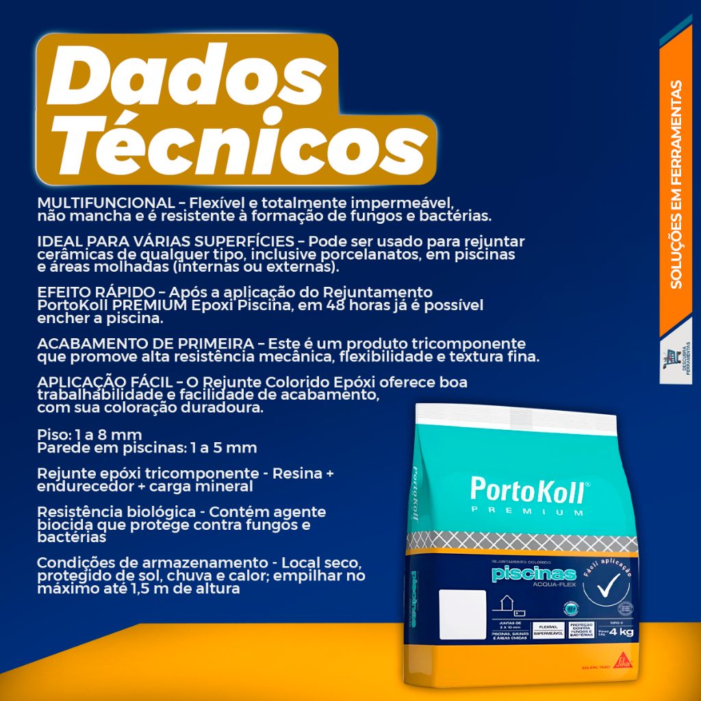 | Rejunte Portokoll Piscina Branco Brilhante 4kg AcquaFlex Impermeáve... este produto | R$ 32,86 | 27% | 4.9/5 | 135 |