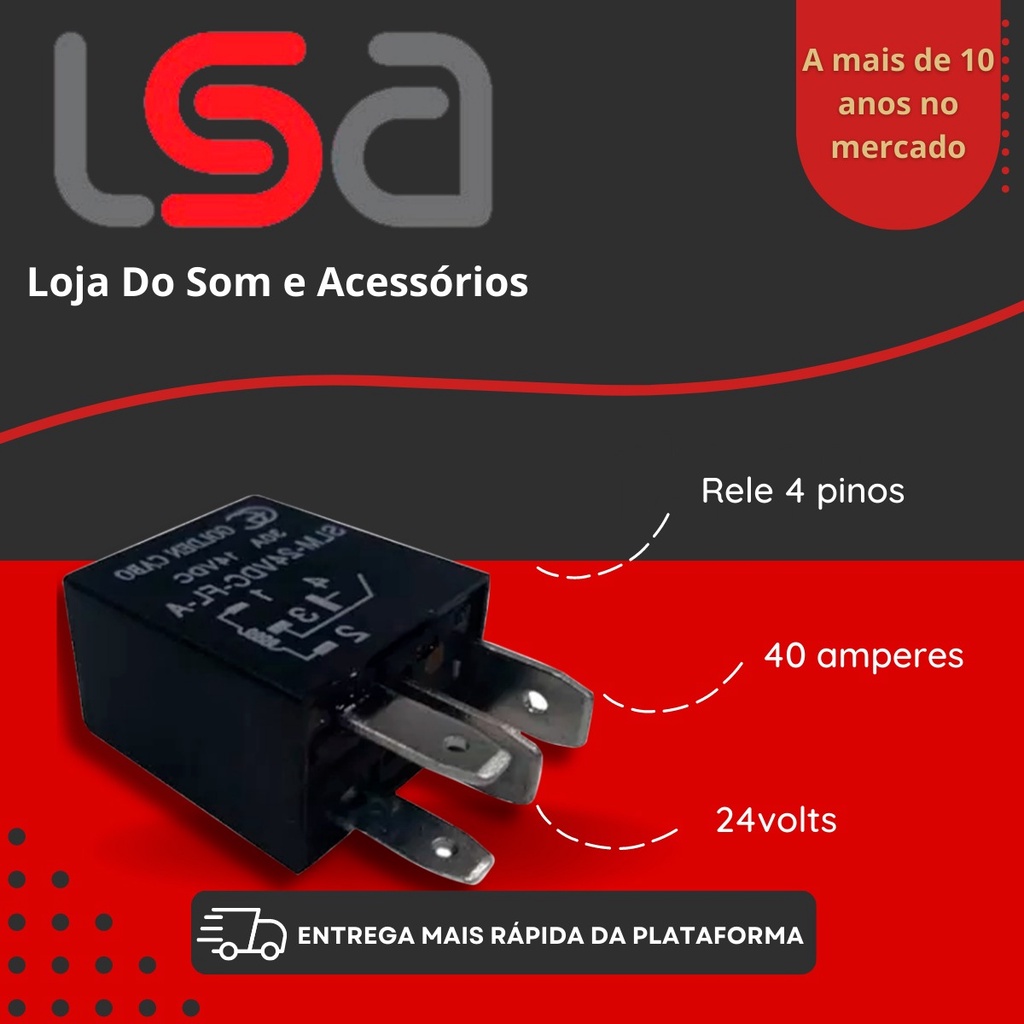RELE AUXILIAR UNIVERSAL 40A 24v DESCRIÇÃO: - Excelente qualidade - Marca: GC - 40 Amperes - 24 Volts - 4 Terminais Caso tenha dúvida, nos mande no campo de perguntas logo abaixo. IMPORTANTE: A Loja do Som e Acessórios recomenda que a instalação seja feita por profissional especializado e não se responsabiliza pelo mau uso do produto.