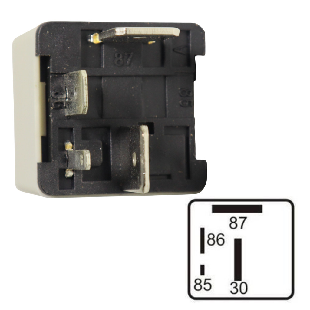 Relé para Injeção Eletrônica 4 Terminais, sem suporte, 12V - 40A - 2 Largos - 9,5mm 1 normal - 6,3mm 1 pequeno - 2,8mm cor cinza. - Produto original Lista de produtos eqüivalentes: SIEMENS: D-22198. VW AUDI: 171906383; 191906383; 191906383C; 857951253. - Santana / quantum / Golf / Audi / Passat alemão.
