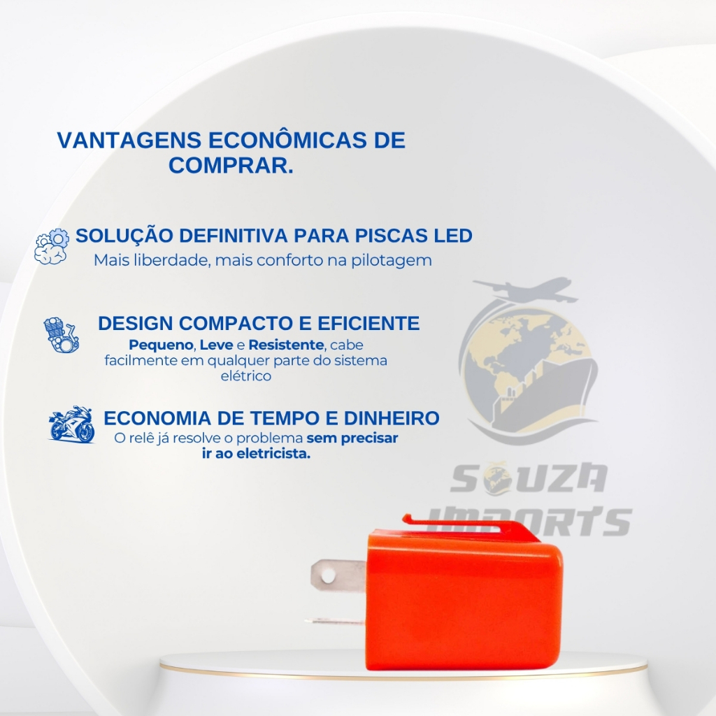 Relê Pisca 12V com Regulagem – Universal para LED | 2 Pinos Frequência Ajustável | Instalação Rápida | Compatível com Múltiplas Motos Atualize o sistema de sinalização da sua moto com mais segurança e estilo! O Relê de Pisca com Regulagem para LED 12V é a escolha ideal para quem utiliza setas em LED e precisa de um funcionamento estável e silencioso. Principais Benefícios: • Compatível com LEDs – Ideal para motos com piscas em LED • Instalação Plug & Play – Simples, rápida e sem necessidade de adaptações • Regulagem de Velocidade de Pisca – Ajuste fácil da frequência com apenas um giro • Tecnologia SMD Avançada – Maior durabilidade e estabilidade elétrica • Proteções Integradas – Contra curto-circuito, sobrecarga e inversão de polaridade Especificações Técnicas: Modelo: 2 Pinos (B e L) Tensão: 12V DC Frequência de Pisca: Ajustável entre 50 a 200 ciclos/min Potência Suportada: 21W x2 + 3,4W Corrente de Operação: De 0,02A a 12A Temperatura de Trabalho: -40°C a +80°C Dimensões Aproximadas: 3,5cm x 3,5cm x 2,7cm Compatibilidade: Substitui a maioria dos relês de 2 pinos originais Ajuste de Frequência Simples: • Gire no sentido horário para pisca mais lento • Gire no sentido anti-horário para pisca mais rápido Conteúdo da Embalagem: 1x Relê de Pisca 12V com Regulagem – 2 Pinos Universal Ideal para quem quer estabilidade no pisca, sem piscadas desreguladas ou barulhos incômodos. Perfeito para motos com piscas de LED e instalação prática. Garantia de funcionalidade com visual limpo e discreto.