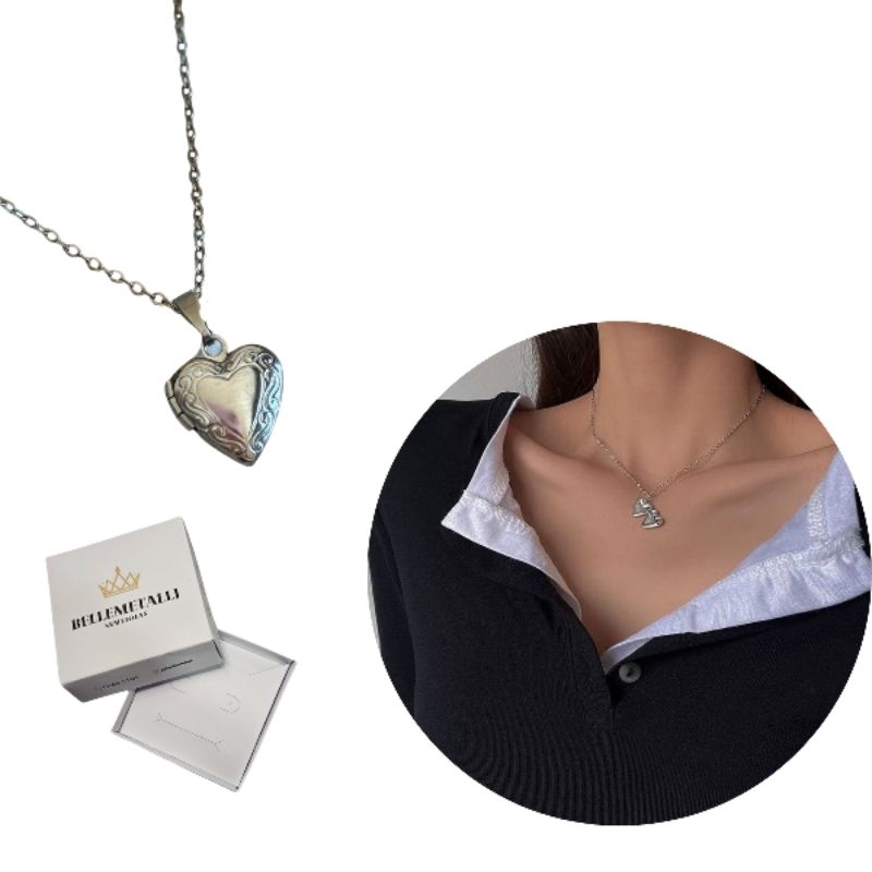 Relicário Coração Mini + Corrente 45cm ou 60cm em Aço Inox com 2 Fotos + Caixinha de Presente