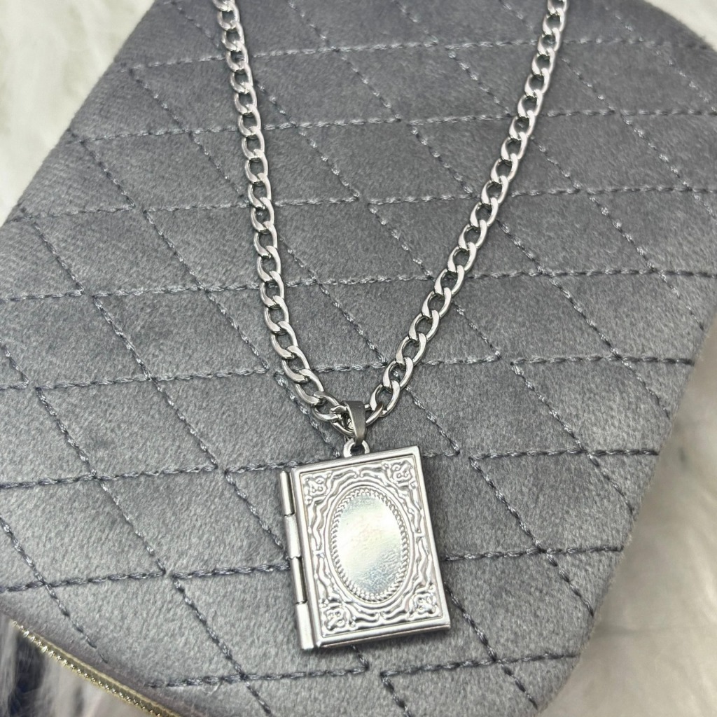Relicário Masculino Livro + Corrente 60cm em aço Inox Antialérgico com 2 Fotos + Caixinha