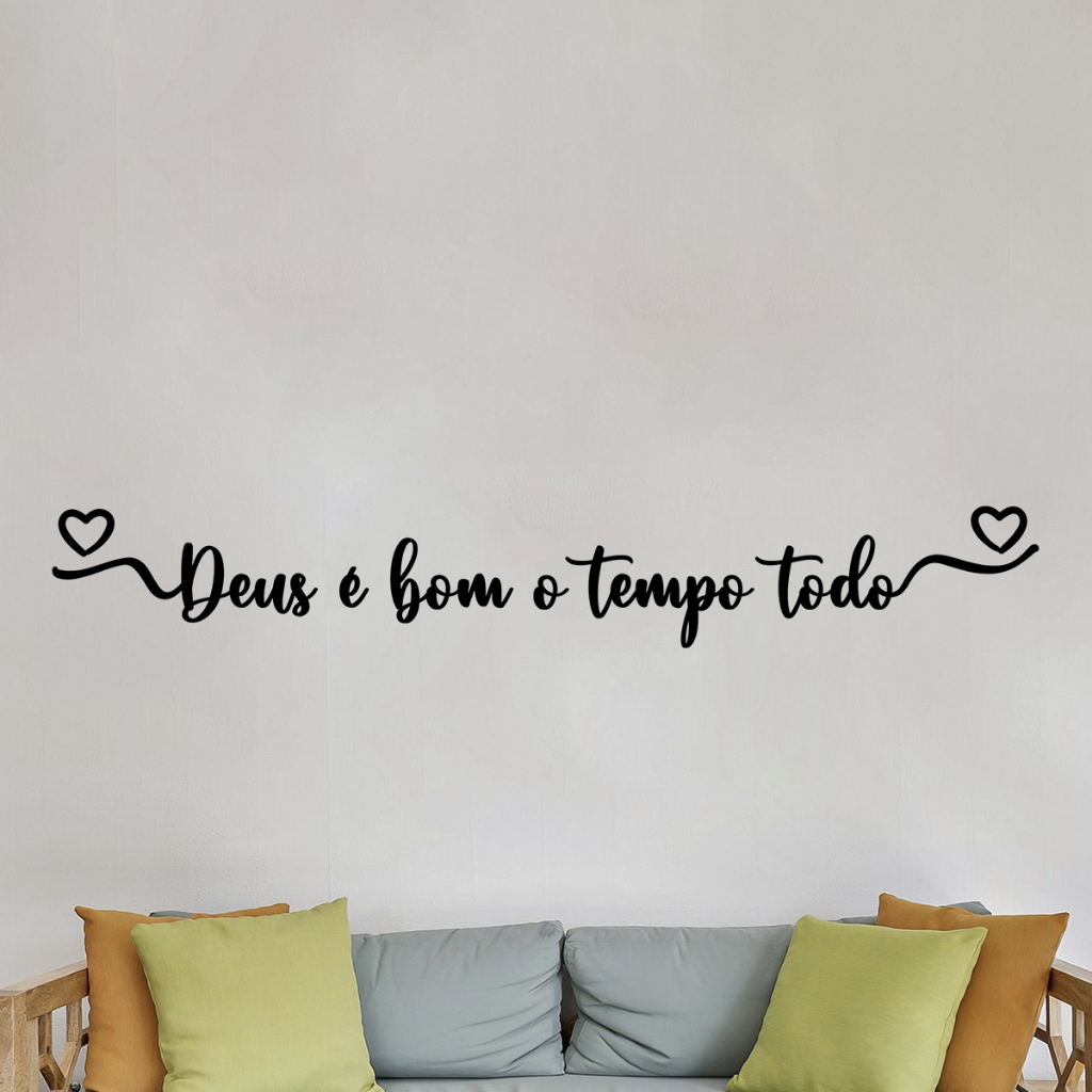 Religioso Frase Deus é Bom o Tempo Todo MDF Quadro Decorativo 3mm Preto Fosco