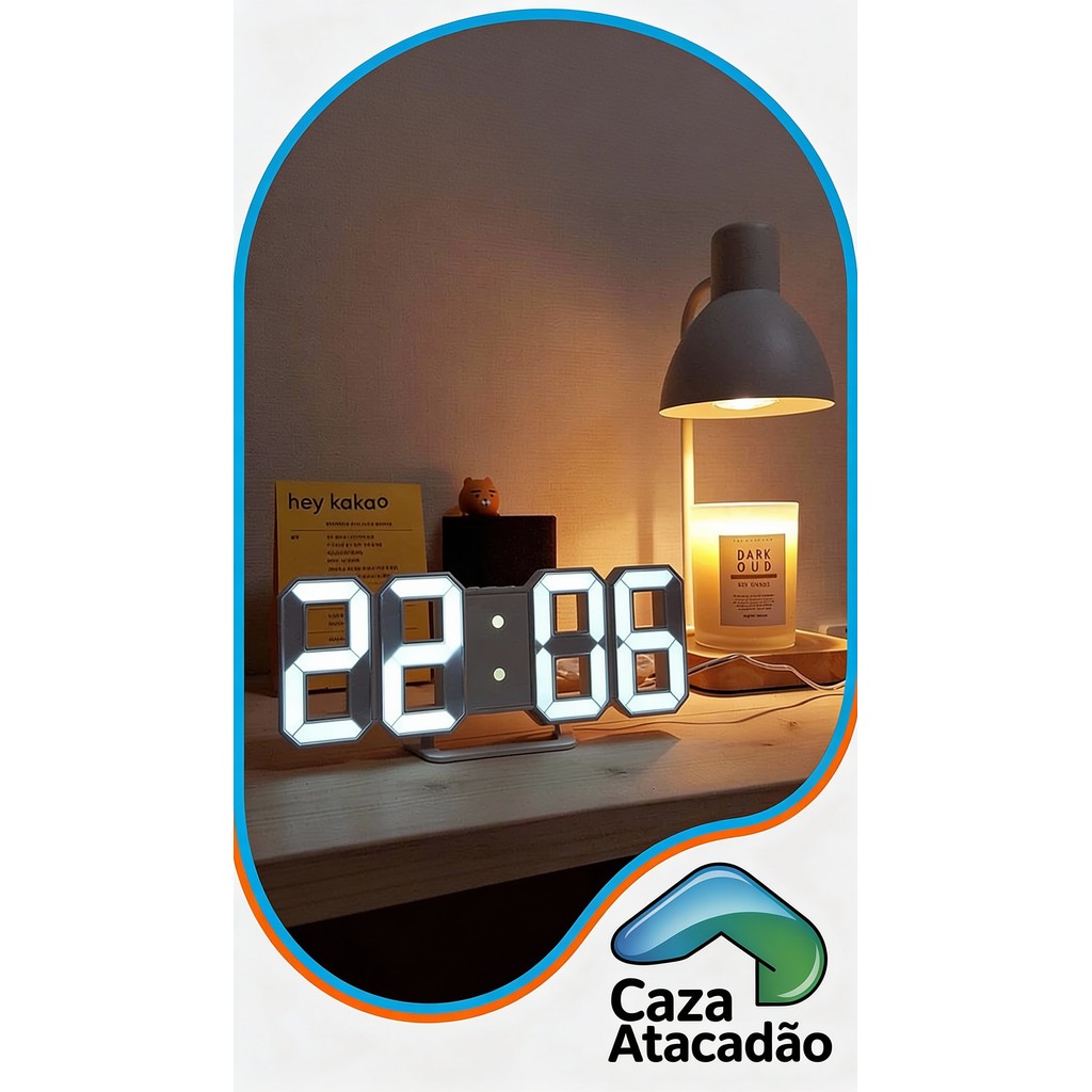 Relógio digital com design 3D moderno, ideal para mesa, desktop ou decoração de ambientes. Possui iluminação LED clara e elegante, funcionando também como luz noturna. ✔ Display LED 3D de fácil visualização ✔ Design moderno e decorativo ✔ Ideal para quarto, escritório e sala ✔ Pode ser usado como relógio e luz noturna ✔ Baixo consumo de energia 📦 Conteúdo: 1 Relógio Digital LED 3D Perfeito para quem busca praticidade e estilo na decoração.