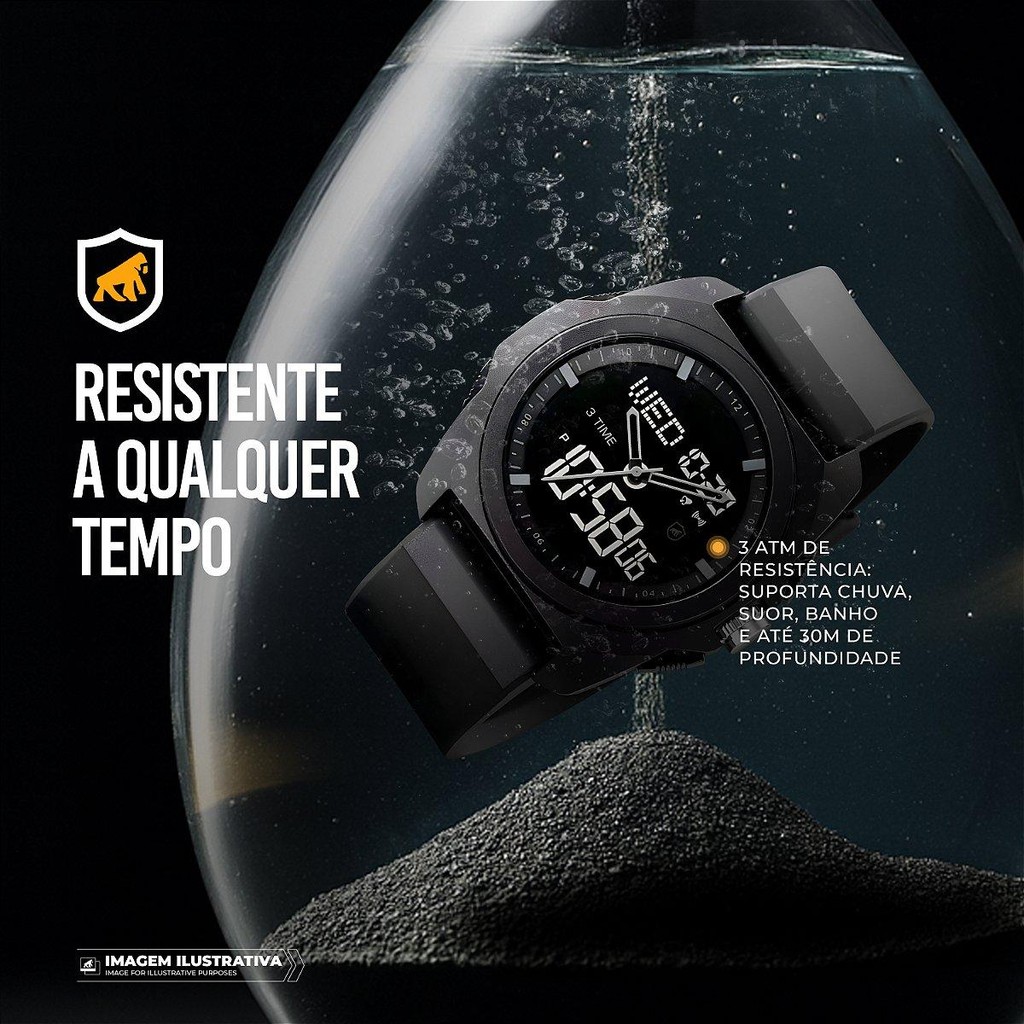 O Relógio Survivor da Gshield foi criado para quem precisa de muito mais do que um simples acessório no pulso. Ele é um companheiro de todas as horas, que une a elegância do visor analógico à praticidade do digital em um design robusto e resistente à água, pensado para suportar os desafios do dia a dia. Feito para quem não abre mão de estilo, mas também busca desempenho, o Survivor acompanha você do escritório à academia, das aventuras ao ar livre às rotinas mais intensas. Além de marcar o tempo com precisão, o Survivor traz funcionalidades que tornam sua vida mais prática: alarme diário, cronômetro de alta precisão, calendário programado até 2099, contagem regressiva de até 24 horas e até mesmo a função de segundo horário, perfeita para quem viaja ou precisa acompanhar fusos diferentes. Seu visor com luz de LED garante ótima visibilidade mesmo em ambientes com pouca iluminação, enquanto os botões de fácil acesso permitem configurar todas as funções com rapidez e simplicidade. Cada detalhe foi cuidadosamente pensado para oferecer conforto e durabilidade. A pulseira ajustável se adapta perfeitamente ao pulso, proporcionando firmeza sem abrir mão do bem-estar, e sua estrutura ultra resistente garante que o relógio se mantenha intacto mesmo em condições adversas. O Survivor não é apenas um relógio, mas um verdadeiro aliado que combina tecnologia, resistência e design moderno. Ele foi desenvolvido para pessoas que buscam confiança em cada detalhe e desejam estar sempre preparadas para qualquer situação. Onde quer que você esteja, o Survivor da Gshield estará pronto para acompanhar o seu ritmo. ESPECIFICAÇÕES Marca: Gshield À prova d'água, pode ser submerso até 30 metros / 3 ATM / 3 BAR de profundidade Voltagem: 3V Funções de tempo: hora, minuto, segundo, ano, mês, dia, 12h/24h, configuração de data,bússola Calendário: 2000 - 2099 Cronõmetro: 0-99 horas, 59 minutos e 59 segundos Distância de passos: 30-180 cm Diâmetro do relógio: Ø48mm Peso: 55g Comprimento da pulseira: 25cm Material da pulseira: Silicone Compare os Relógios da Gshield: > ITENS INCLUSOS 1x relógio Survivor GARANTIA 3 meses contra defeitos de fabricação + Garantia Vitalícia Co-Participativa