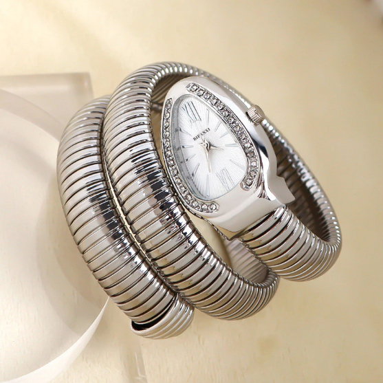 Relógio Bracelete Feminino Cabeça de Cobra Design Serpente Exclusivo com Detalhe em Diamante