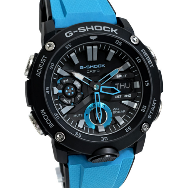 SOBRE A EMPRESA: Somos a Relógios Campana, uma empresa especializada em vendas online, revendedora autorizada das maiores marcas do mercado. Trabalhamos apenas com relógios originais com garantia de fábrica. Comprando conosco você tem a segurança que receberá seu produto nas seguintes condições: ✅ REVENDEDOR AUTORIZADO ✅ PRODUTO ORIGINAL ✅ GARANTIA DO FABRICANTE ✅ PRODUTO NOVO ✅ EMBALAGEM ORIGINAL DO PRODUTO ✅ MANUAL DE INSTRUÇÕES ✅ CERTIFICADO DE GARANTIA ✅ NOTA FISCAL ✅ RELÓGIO A PRONTA-ENTREGA SOBRE O PRODUTO: Estrutura de proteção principal em carbono do G-SHOCK, o relógio que está constantemente definindo novos padrões de relógios incrivelmente resistentes, surge uma nova série com estrutura de proteção principal em carbono, que leva a resistência a um novo patamar. A caixa é feita de resina fina, que incorpora fibra de carbono, proporcionando leveza e a rigidez superior. Este material protege o módulo interno contra danos causados por choques e deformação. A tampa traseira dupla na cor preta protege a superfície traseira contra impactos. A estrutura do botão resistente a choques foi aprimorada, eliminando a necessidade de proteções externas para os botões. O visor do relógio consiste de um cursor de disco e marcadores de hora elevados, para uma aparência robusta e resistente. Especificações: Marca: Casio Modelo: GA-2000-1A2DR Tipo de relógio: Digital e Analógico Gênero: Masculino Cor da caixa: Preto Cor da pulseira: Preto e Azul Estilo: Esportivo Alarme: Sim Cronômetro: Sim Calendário: Sim Luz: Sim Resistência à água: Sim – 20 ATM = 200 metros Tipo de fecho: Fivela Simples Material da Caixa: Resina e Carbono Material da Pulseira: Resina Características do vidro: Vidro Mineral Tamanho da caixa (A x L): 51,2 x 47 mm Espessura da caixa: 14,1 mm Comprimento da pulseira: 25 cm Largura da pulseira: 21 mm Tampa do fundo: Parafusado Peso: 64 Gramas Alimentação: Bateria Conteúdo da Embalagem: Relógio, nota fiscal, certificado garantia e manual de instruções Garantia do Fabricante: 12 meses Fabricante: Casio Brasil