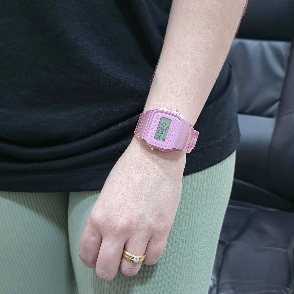 Relógio Casio Digital Feminino Transparente Rosa F-91WS-4DF