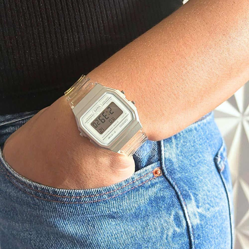 Relógio Casio Digital Unissex Transparente Prateado F-91WS-7DF