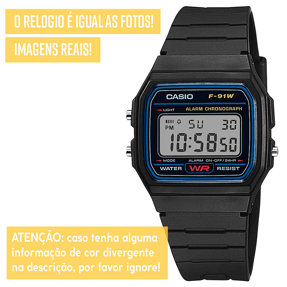 Procurando por uma joia cheia de estilo, tecnologia e que dure a vida inteira? Encontrou! Dê o incrível relógio Casio de presente para você mesmo ou para alguém querido. *1 ANO DE GARANTIA CASIO - Produto com NOTA FISCAL Atuamos somente com produtos 100% ORIGINAIS! Leve em um especialista de sua região para comprovar. Ficha Técnica RESISTENTE A ÁGUA: Sim – selo de resistência 3 ATM (resistência até 30 metros de profundidade) MATERIAL DO VIDRO: Resina MAQUINÁRIO: Digital MATERIAL DO RELÓGIO: Resina COR DO FUNDO: Preto Medidas TAMANHO DA CAIXA (mostrador): 3,5 cm (35mm) – tamanho pequeno ESPESSURA DA CAIXA (mostrador): 0,8 cm (8mm) LARGURA DA PULSEIRA: 1,2 cm (12 mm) CIRCUNFERÊNCIA DA PULSEIRA: 26 cm Funções Calendário Iluminação Alarme/Despertador Cronometro Formato 12/24 horas. Acompanha Relógio Casio, caixa original Casio, manual de instruções em português, certificado de garantia e nota fiscal. Nossos produtos são todos tratados com máximo cuidado, profissionalismo e atenção. Enviamos o seu relógio em uma embalagem reforçada, protegida por dentro e por fora. Caso não tenha gostado ou simplesmente se arrependeu, devolva o produto sem preocupações. Você tem 30 dias a partir do recebimento para devolvê-lo. COMPRE COM SEGURANÇA Revendedor autorizado Casio