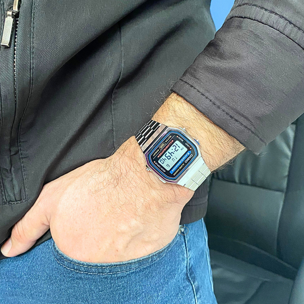 SOBRE A EMPRESA: Somos a Relógios Campana, uma empresa especializada em vendas online, revendedora autorizada das maiores marcas do mercado. Trabalhamos apenas com relógios originais com garantia de fábrica. Comprando conosco você tem a segurança que receberá seu produto nas seguintes condições: ✅ REVENDEDOR AUTORIZADO ✅ PRODUTO ORIGINAL ✅ GARANTIA DO FABRICANTE ✅ PRODUTO NOVO ✅ EMBALAGEM ORIGINAL DO PRODUTO ✅ MANUAL DE INSTRUÇÕES ✅ CERTIFICADO DE GARANTIA ✅ NOTA FISCAL ✅ RELÓGIO A PRONTA-ENTREGA SOBRE O PRODUTO: Um modelo padrão com alarme, cronômetro, calendário e luz de fundo. Um relógio de metal simples que é fácil de combinar com o seu visual. Especificações: Marca: Casio Modelo: A168WA-1WDF Tipo de relógio: Digital Gênero: Unissex Cor da caixa: Prateado Cor da pulseira: Prateado Estilo: Casual Alarme: Sim Cronômetro: Sim Calendário: Sim Luz: Sim Resistência à água: Sim – rotinas diárias Tipo de fecho: Fivela de gancho Material da caixa: Resina Material da pulseira: Aço Inoxidável Características do vidro: Tamanho da caixa (A x L): 38,6 x36,6 mm Espessura da caixa: 9,6 mm Comprimento da pulseira: 22 cm Largura da pulseira: 15 mm Tampa do fundo: Parafusado Peso: 50 Gramas Alimentação: Bateria Conteúdo da Embalagem: Relógio, nota fiscal e manual de instruções Garantia do Fabricante: 12 meses Fabricante: Casio Brasil