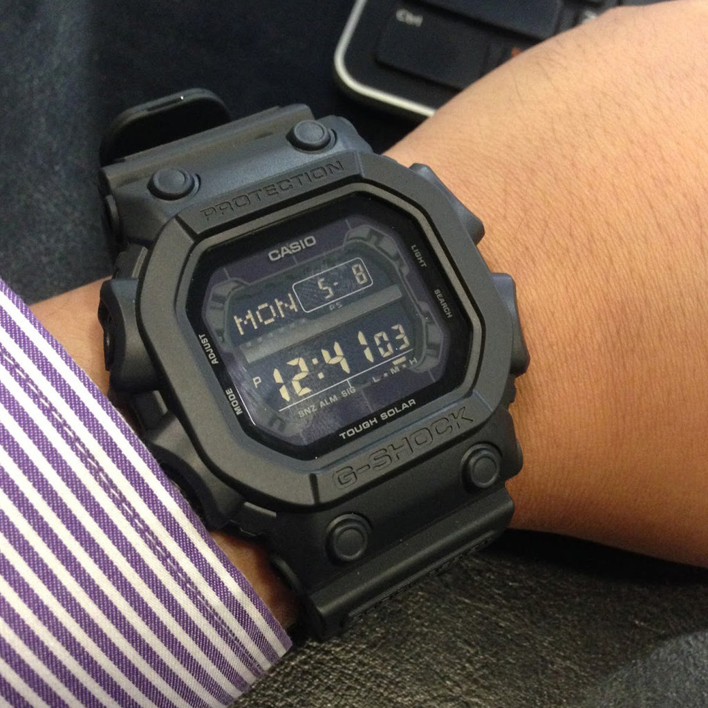 Relógio Casio G-shock Gx-56Caixa: ResinaPulseira: ResinaVidro: Cristal mineralVedação: 200 metrosFunções:Fundo luminoso – Luz automática por sensor, duração de luminosidade selecionável, persistência luminosaTough Solar (movido à energia solar)Hora mundial – 31 fusos horários (48 cidades + Coordinated Universal Time), horário de verão on/offCronômetro de 1/100 segundo – Capacidade de medição: 23:59’59.99” – Modos de medição: tempo transcorrido, divisão de tempo e os dois melhores temposCronômetro regressivo – Unidade de medição: 1 segundo – Faixa de contagem: 24 horas – Configuração inicial da faixa de contagem: 1 minuto a 24 horas (intervalos de 1 minuto e 1 hora)5 alarmes diários (com um alarme soneca)Sinalização a cada horaIndicador de carga da bateriaEconomia de energia (o visor fica em branco para economizar energia quando o relógio fica no escuro)Calendário automático (até o ano 2099)Formatos de 12/24 horasAtivação e desativação do tom de operação do botãoHorário regular: hora, minuto, segundo. am/pm, mês, data e diaPrecisão: ±15 segundos por mêsDuração aproximada da bateria: 11 meses em bateria recarregável (período de operação regular sem exposição a luz após recarga) – 27 meses em bateria recarregável (período de operação quando armazenada em total escuridão com a economia de energia ligada após recarga total)Tamanho da caixa: 55.5×53.6×17.5mm