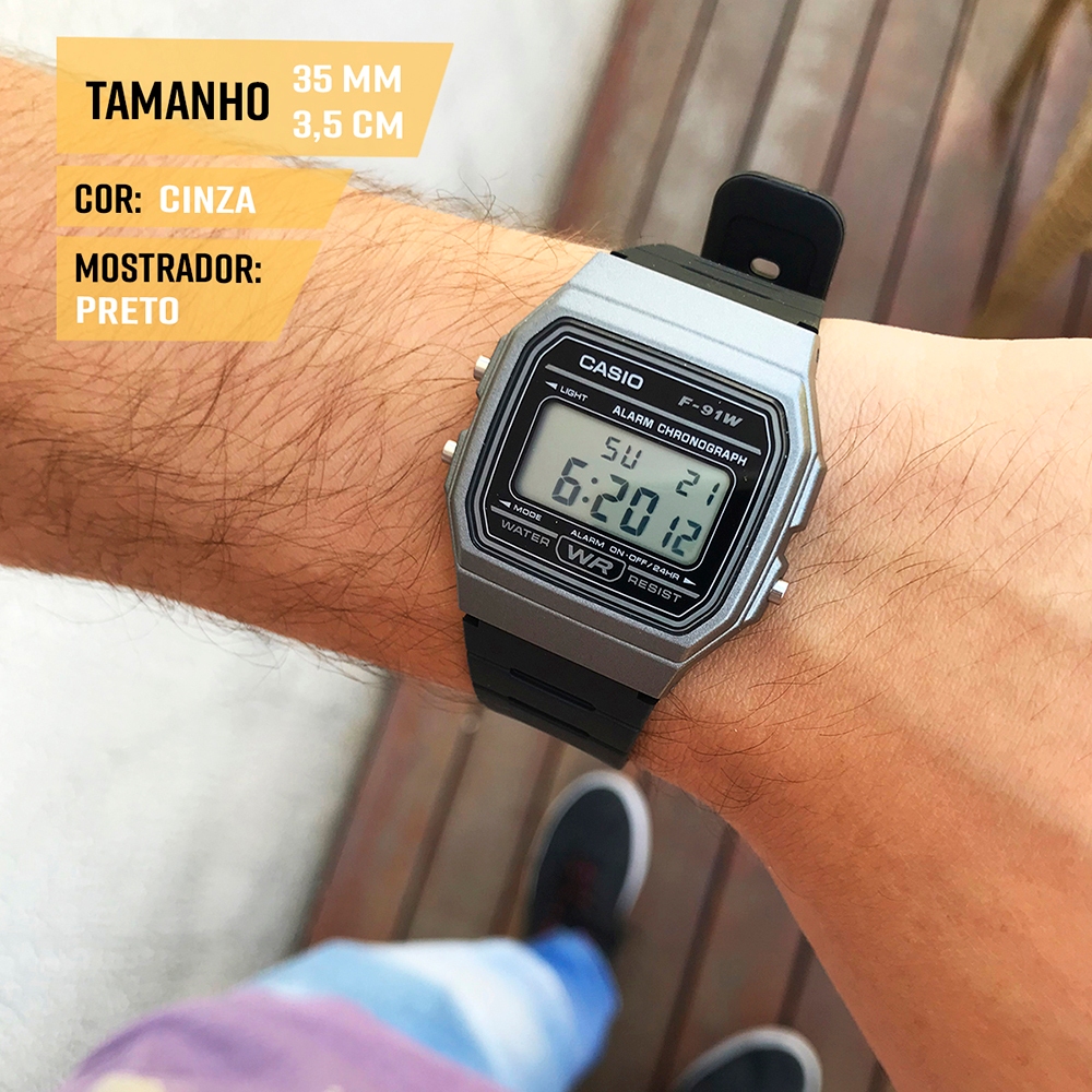 Bem vindo a loja LEBRAVE! Procurando por uma joia cheia de estilo, tecnologia e que dure a vida inteira? Encontrou! Dê o incrível relógio Casio de presente para você mesmo ou para alguém querido. *1 ANO DE GARANTIA CASIO - Produto com NOTA FISCAL Atuamos somente com produtos 100% ORIGINAIS! Leve em um especialista de sua região para comprovar. Ficha Técnica RESISTENTE A ÁGUA: Sim – selo de resistência 3 ATM (resistência até 30 metros de profundidade) MATERIAL DO VIDRO: Acrílico MAQUINÁRIO: Digital MATERIAL DO RELÓGIO: Resina COR DO FUNDO: Preto Medidas TAMANHO DA CAIXA (mostrador): 3,5 cm (35mm) – tamanho pequeno ESPESSURA DA CAIXA (mostrador): 0,6 cm (6mm) LARGURA DA PULSEIRA: 1,3 cm (13 mm) CIRCUNFERÊNCIA DA PULSEIRA: 26 cm Funções Calendário Iluminação Alarme/Despertador Cronometro Formato 12/24 horas. Acompanha Relógio Casio, caixa original Casio, manual de instruções em português, certificado de garantia e nota fiscal. Nossos produtos são todos tratados com máximo cuidado, profissionalismo e atenção. Enviamos o seu relógio em uma embalagem reforçada, protegida por dentro e por fora. COMPRE COM SEGURANÇA Revendedor autorizado Casio
