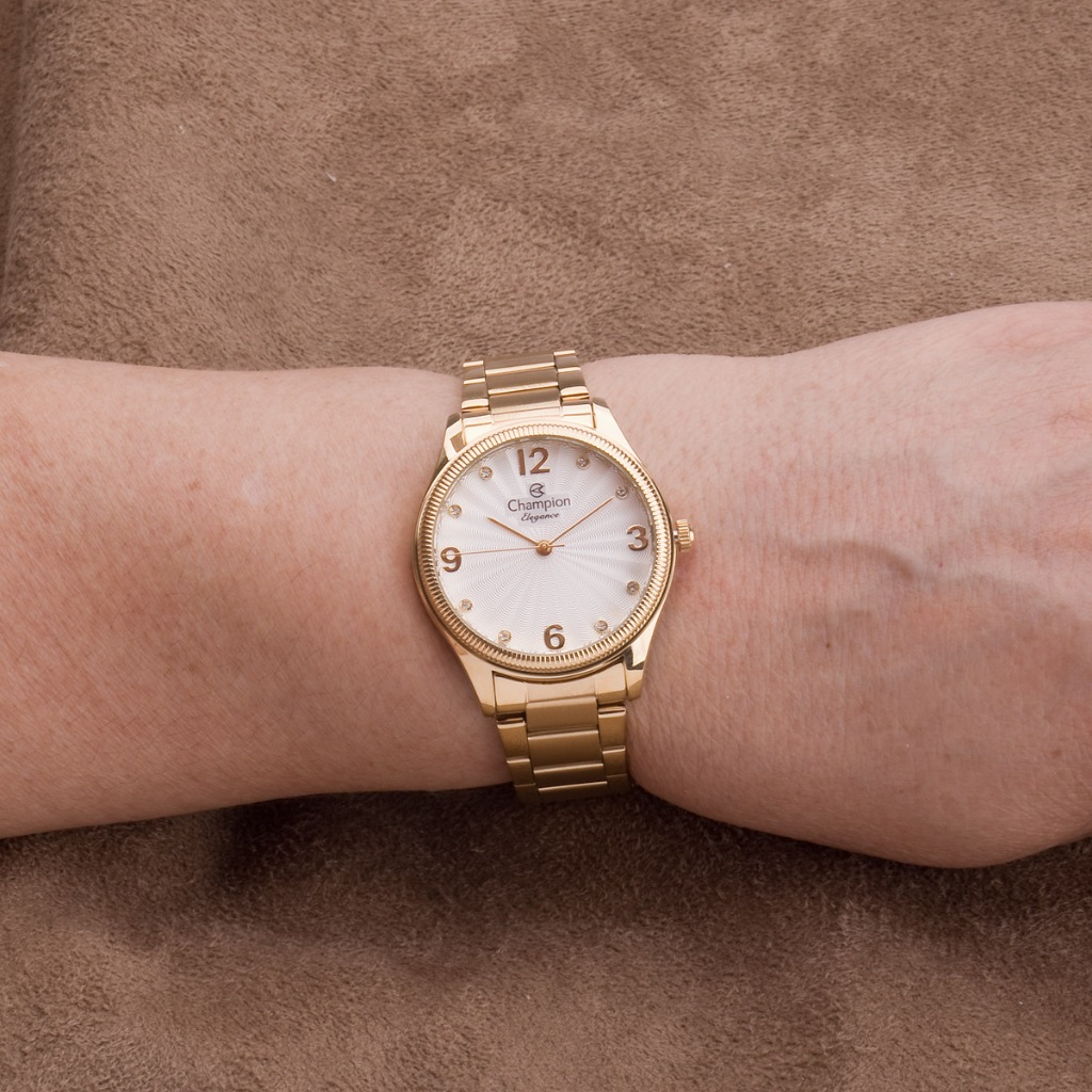 Relógio Champion Feminino Analógico Dourado + Bolsa Original À Prova D'Água Presente Mulher Esposa Namorada Aniversário