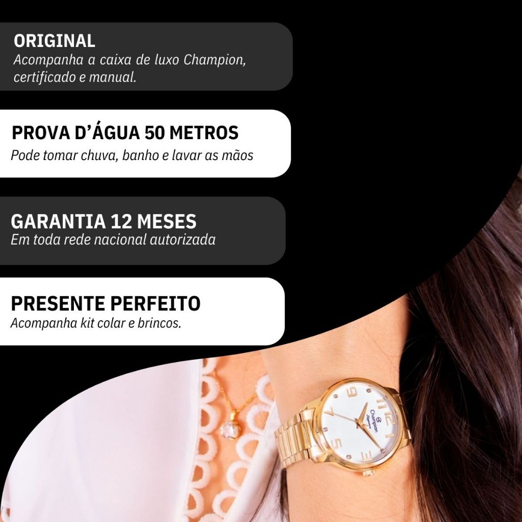 | Relógio Champion Feminino Analógico Dourado Prova D´agua + Kit Cola... este produto | R$ 399,00 | — | 4.8/5 | — |