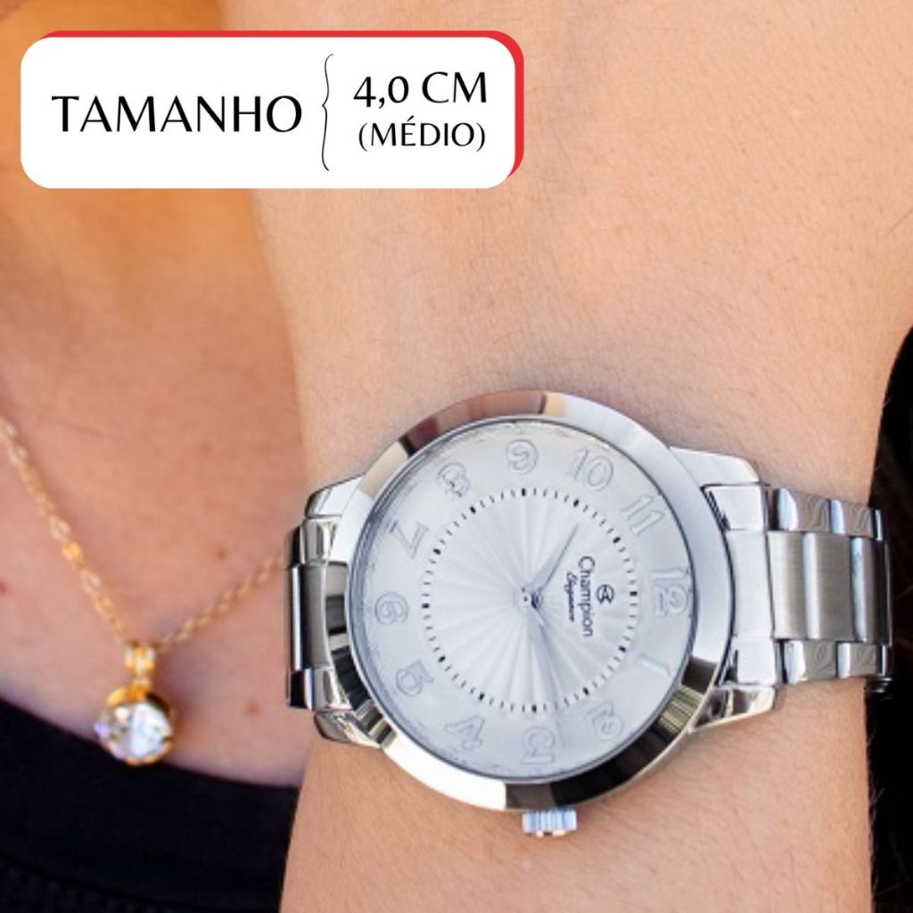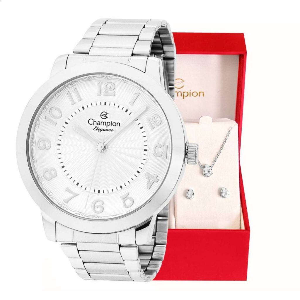 Relógio Champion Feminino Analógico Prata CN25118Q + Kit Colar e Brincos, à prova d'água, presente tendência para mulher
