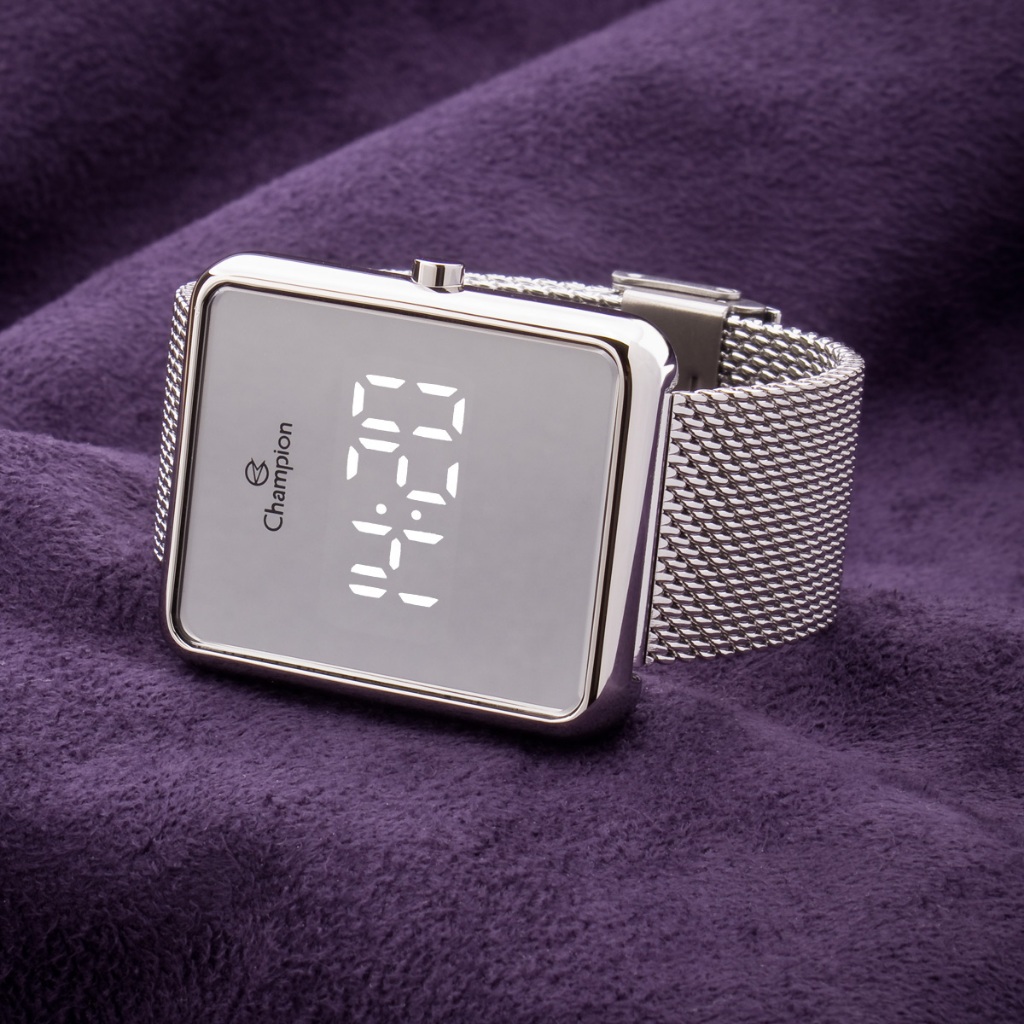 Relógio Champion Feminino Digital Espelhado Prata Original À Prova d'Água Presente Mulher Namorada Esposa Moda