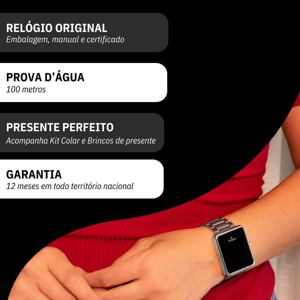 Se você busca elegância e tecnologia em um só relógio, o Champion CH40086T é a escolha perfeita! Com um design digital espelhado e acabamento em aço, ele traz um visual moderno para qualquer ocasião. Com resistência à água de 3 ATM, ele suporta respingos e pode ser usado no dia a dia com tranquilidade. Dimensões e Peso ✔ Diâmetro da Caixa: 3,7 cm x 4,0 cm (MÉDIO) ✔ Espessura: Fino e confortável ✔ Pulseira: Ajustável para diferentes tamanhos de pulso Materiais de Alta Qualidade ✔ Vidro: Cristal Mineral – resistente a riscos e impactos ✔ Caixa: Metal – durabilidade e brilho sofisticado ✔ Pulseira: Aço inoxidável – resistente e confortável Recursos e Funcionalidades ✔ Mecanismo Quartz Digital – tecnologia e precisão ✔ Tela com Visor Espelhado – exibe as horas com um toque moderno ✔ Resistência à água 3 ATM – suporta respingos, chuva leve e lavagem das mãos ✔ Alimentação por Bateria – longa duração Design e Cores ✔ Mostrador: Espelhado ✔ Caixa: Dourado/Prata (conforme variação) ✔ Pulseira: Aço inoxidável O Que Vai na Embalagem? ✔ Relógio Original Champion CH40086T ✔ Caixa Original Champion ✔ Kit Colar e Brincos (iguais às fotos – podem variar conforme lote do fabricante) ✔ Manual de Instrução em Português ✔ Certificado de Garantia (1 ano com o fabricante) ✔ Nota Fiscal – autenticidade e segurança garantidas Por que Comprar na RBM WEBSHOP? ✅ Produtos 100% originais, com nota fiscal e garantia oficial ✅ Envio imediato e seguro para todo o Brasil ✅ Atendimento de qualidade – suporte rápido para suas dúvidas 🛒 Garanta já o seu e adicione tecnologia e sofisticação ao seu visual!
