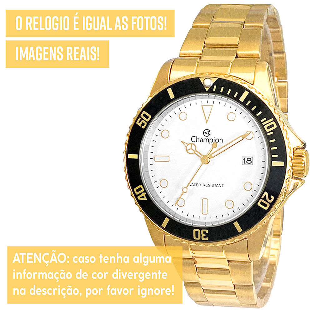 Relógio Champion Masculino Dourado Analógico Garantia Luxo