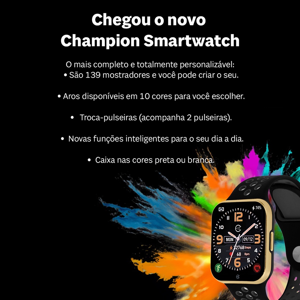 Relogio Champion Smart Watch Inteligente 033 + Pulseira Extra Unissex Original À Prova DÁgua CH50033