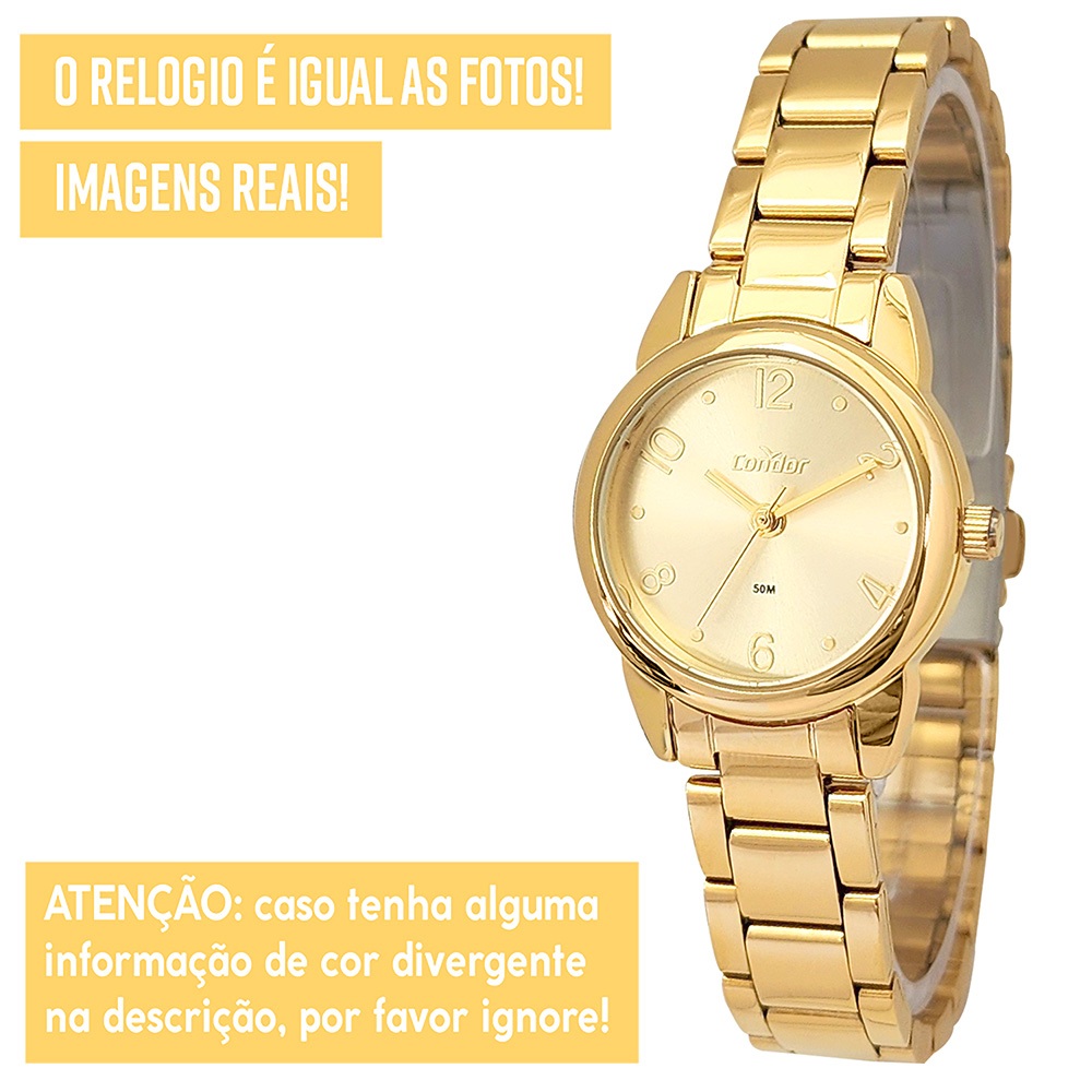 Relógio Condor Feminino Original Dourado Prova Dágua Luxo
