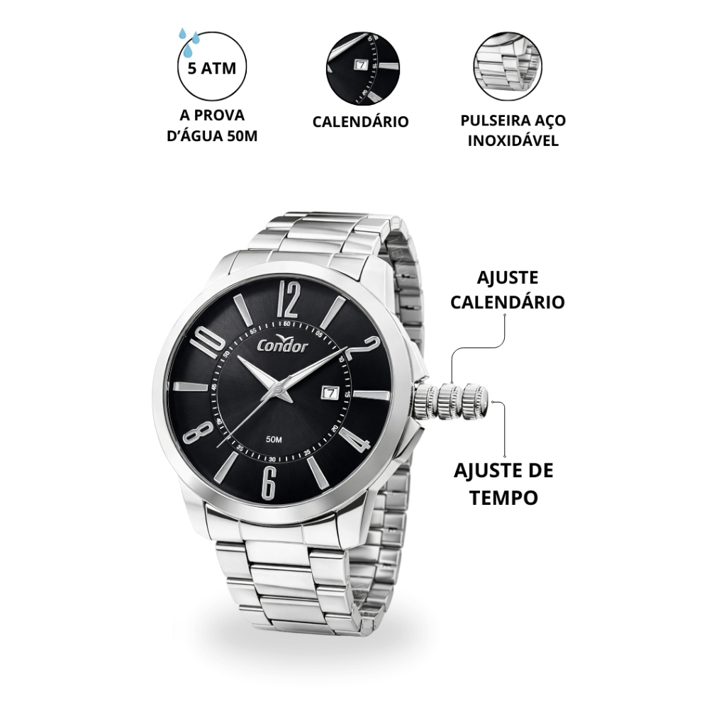 | Relógio Condor Masculino Aço Inoxidável Analógico Clássico com Cale... este produto | R$ 205,50 | 21% | 5.0/5 | 1 |