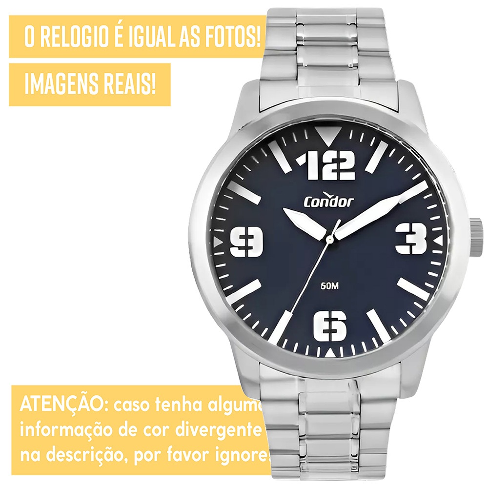 Relógio Condor Masculino Prata Dourado Prova d'água com 1 ano de garantia