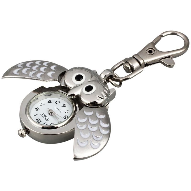 Relógio De Bolso Coruja Com Chaveiro 40 x 25 mm Prata