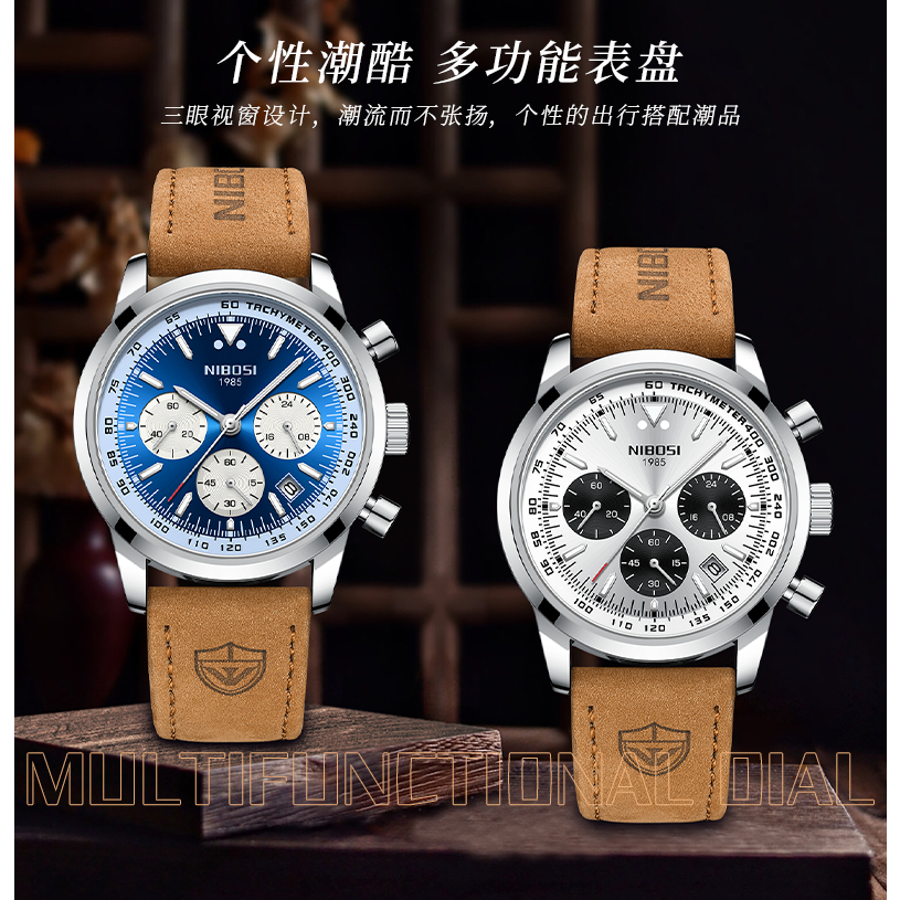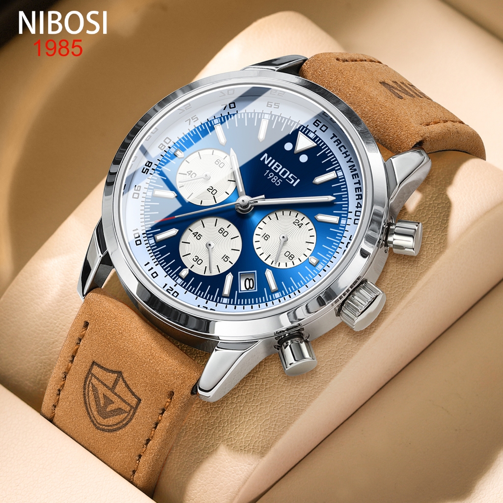 Relógio De Homem casual De Negócios NIBOSI Couro De Quartzo À Prova D'água Brilhante No Escuro