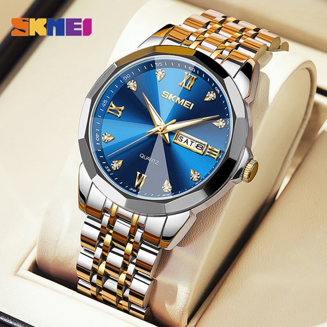 Relógio De Luxo À Prova D'água Skmei Watch Men's Blue Calendário Original Em Aço Inoxidável Função Luminosa