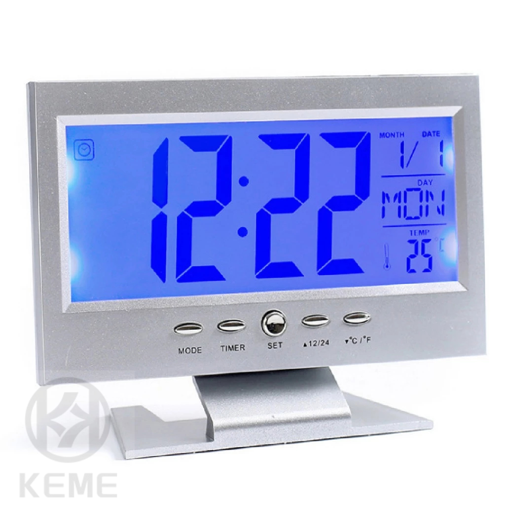 Relógio de Mesa Digital Prateado de LCD Com iluminação em LED