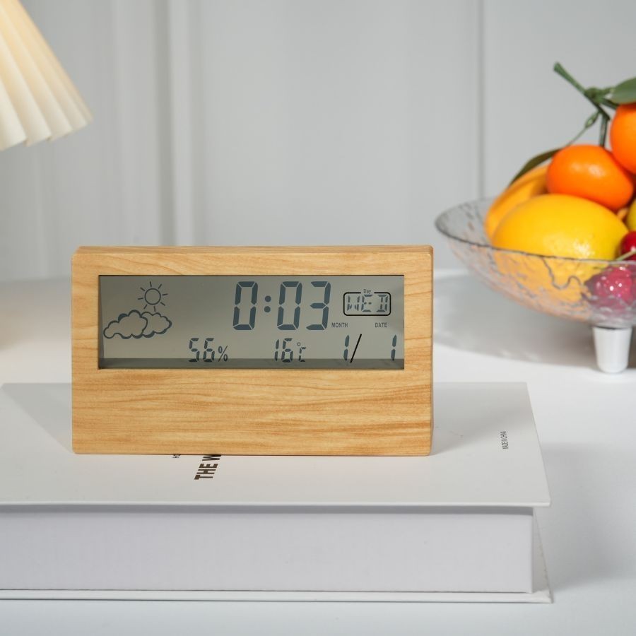 Relógio De Mesa LCD De Cabeceira 13.8x7.8x3.7CM Com Temperatura E Umidade Alarme Eletrônico Digital
