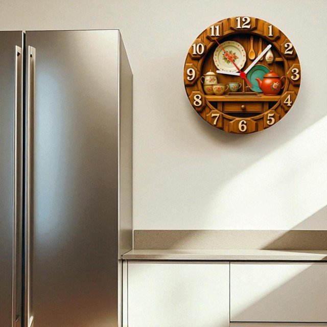 Relógio de Parede - Amadeirado Cozinha Efeito 3D - 25x25x2cm