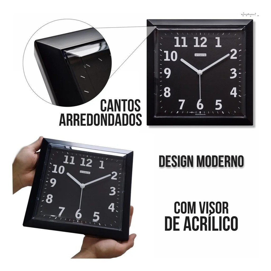 | Relógio De Parede Ambiente-herweg Quadrado Preto Sala Quarto este produto | R$ 42,90 | 28% | 5.0/5 | — |