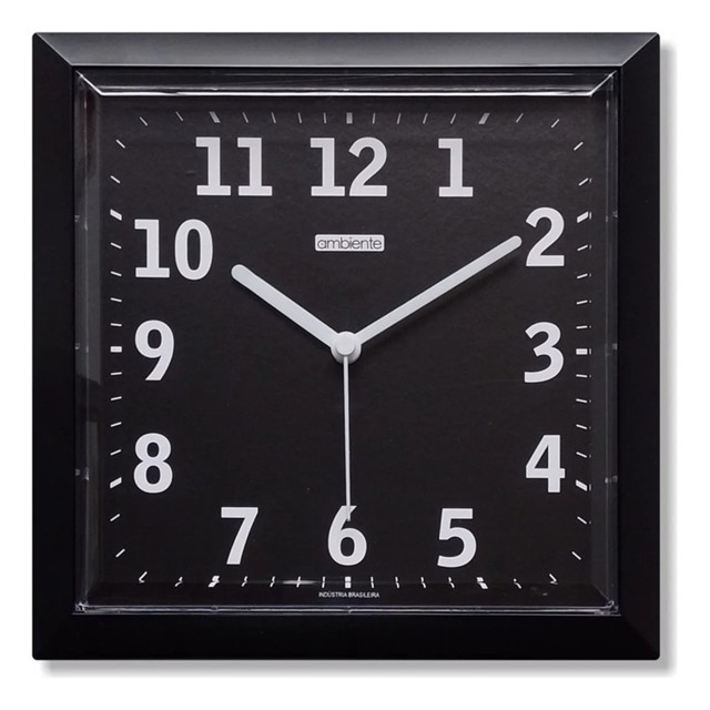 Bem Vindo a Loja DE TUDO MAIS UM POUCO, é um prazer ter você aqui! => REVENDEDOR AUTORIZADO => PRODUTO ORIGINAL => GARANTIA DE 1 ANO DIRETAMENTE COM O FABRICANTE => PRODUTO NOVO => MANUAL DE INTRUÇÕES => NOTA FISCAL Produto ideal para a sua decoração, essencial no dia a dia. O modelo quadrado é elegante, traz beleza ao ambiente. A marca AMBIENTE pertence ao grupo HERWEG, sinônimo de qualidade e durabilidade. ESPECIFICAÇÕES: Aro Externo na Cor Preto Fundo na cor Preto Utiliza 01 Pilha AA 1,5V (Não Inclusa) Dimensão: Diâmetro: 24,7 cm Largura: 24,7 cm Espessura: 2,6 cm Material: Plástico e Acrílico Estilo: Quadrado Preto Acompanha: - Manual de instruções - Embalagem - Nota fiscal Ainda está com dúvidas? Tire todas elas no chat, será um prazer atender você = )