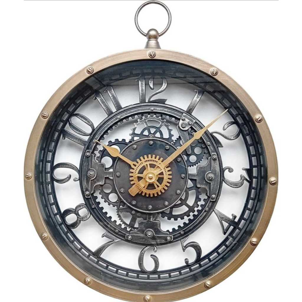 Relógio De Parede Analógico Retro Dourado Com Maquinário Exposto Stil Decor