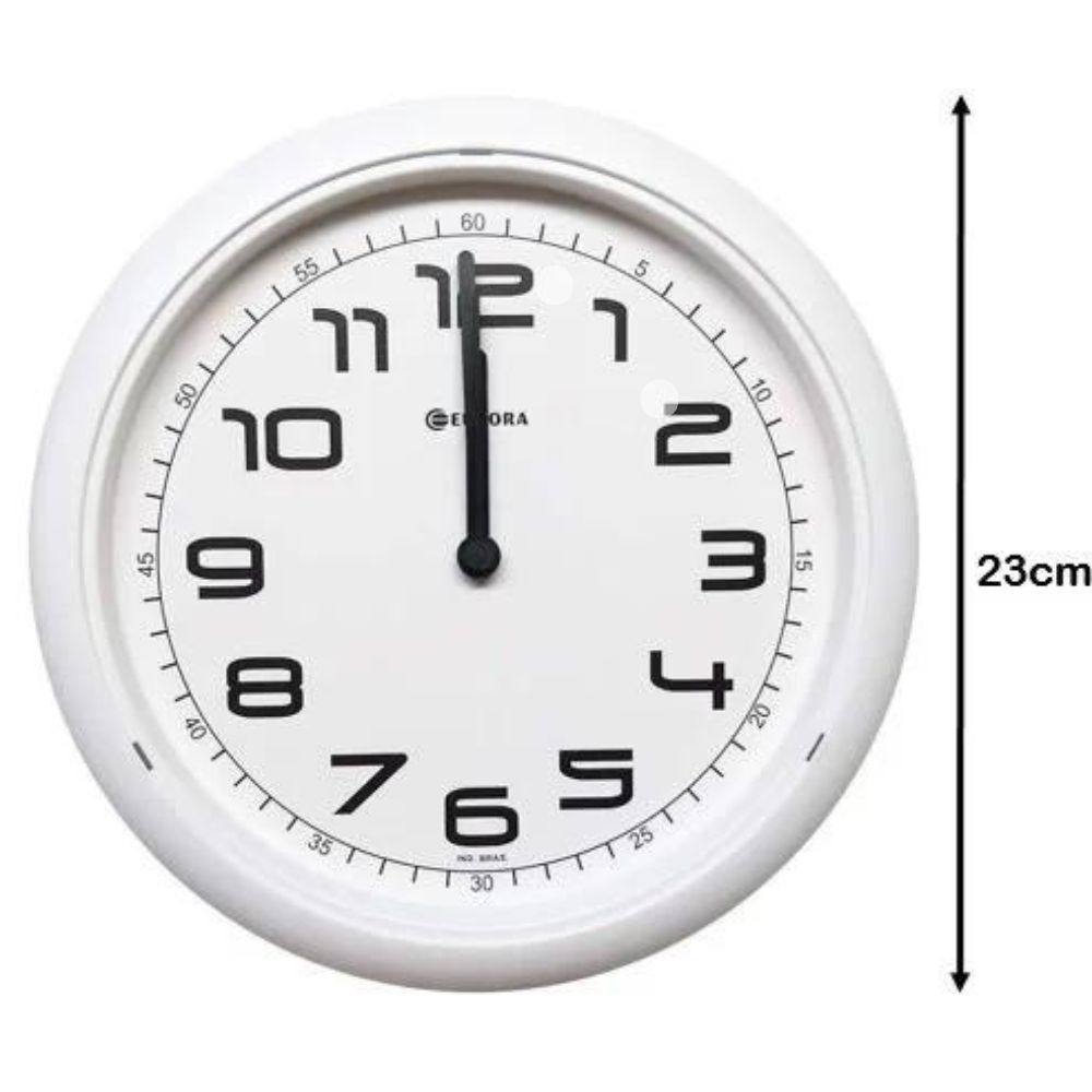 Relógio de Parede Branco Eurora 6517 021Os relógios de parede são um toque de aconchego ao ambiente. Aqui na Elister você garante qualidade e durabilidade com os melhores modelos do mercado.Todos os produtos acompanham a nota fiscal simplificada, que vai colada junto à etiqueta. ESPECIFICAÇÕES TÉCNICAS-Marca: Eurora-Cor do mostrador: Branco-Cor da moldura: Branco-Material: Plástico injetado-Garantia: 12 mesesMEDIDAS-Diâmetro: 24 cm-Espessura: 4 cm